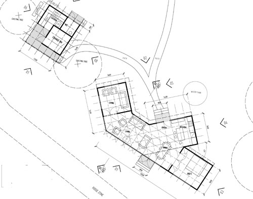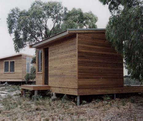 The client’s brief for this small cottage and sauna on French Island was shaped by their Finnish cultural traditions. Conventional bathrooms are replaced by the daily sauna, and water for the kitchen is collected by hand from the tanks. Building regulation was adhered to at its most minimum level. Other parameters were dictated by the builder on the island who had received a shipment of red cedar and requested only 90 or 45 degree corners. Set amongst low-slung coastal gums and sandy soil on a hillside the views across western port bay are rugged and expansive.